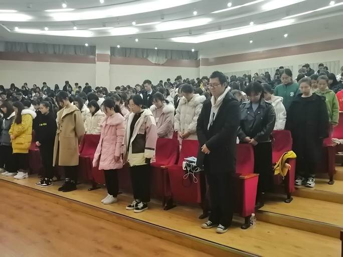 2019年12月13日,距离南京大屠杀82年,在第六个国家公祭日之际,为悼念在南京大屠杀中不幸遇难的同胞,弘扬爱国主义精神,进一步激发同学们的爱国热情和矢志报国的信念,ac米兰官网中文网站在校3号报告厅举行了“勿忘国殇,奋进青春”主题爱国主义教育活动。学院辅导员、19级全体学生、学生党员、各团支部书记、团学干部共计350余人参加。