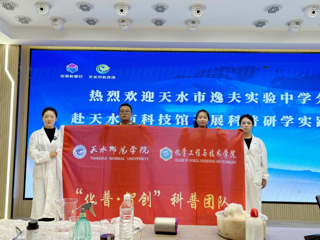 在庆祝中华人民共和国成立75周年之际,由天水市科技馆、天水市逸夫实验中学分校主办的“筑梦科学,共创未来”主题科普系列活动在天水市科技馆举办。米兰官网ac米兰官网中文网站研究生“化普·智创”科普团队受邀参加活动并进行科普实验展示。