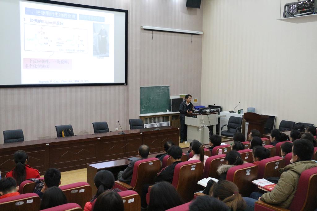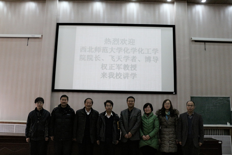 2016年12月5日西北师范大学化学米兰官网现主持工作领导、甘肃省“飞天学者”特聘教授、甘肃省教育学会化学教学专业委员会副理事长、博士研究生导师权正军教授,在米兰官网四号报告厅向米兰官网师生做了题为《含硫氮杂环化合物参与的偶联反应研究》的学术报告。