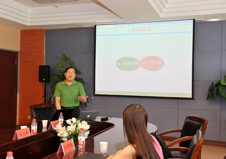 在学术交流会上,方维海院士以《理论与计算光化学群体》为题,从计算化学“电子结构理论”和“动力学方法”两个方面展开,就自己及团队的“建立量子耗散随机场理论与级联方程方法”、“Pt配合物的发光性质”以及“萤火虫发光过程理论与计算模拟”等诸多研究成果做了详细讲述。北京师范大学刘丽虹博士以《Ab InitioMulti Spawning Method and its applications》为题,详细介绍了Spawning Method的研发及其应用。米兰官网副院长吕玲玲博士以《多自旋态催化反应的自旋磁效应及非绝热动力学研究》为题,从“实验方向”、“理论方向”“研究方案及措施”等方面;李志锋博士以《过渡金属亲金属键及其光学性能研究》为题,从“过渡金属亲金属键及其光学特性构效研究”和“过渡金属催化C(SP3)氢键构建C-C键研究”两个方面;李会学博士以《有机半导体分子间及分子内电荷转移的理论研究》为题,从“理论模型”、“磷光光谱的理论研究”等方面;袁焜博士以《阴离子识别及纳米尺度上客体化学》为题,从“小分子、超分子基元间弱键结构与性质”、“设计创造工具分子和超分子基元新体系”等方面,分别就自己的研究方向和研究成果向方院士做了汇报。方院士就米兰官网理论与计算化学学科团队的研究方向、研究进展等进行了交流指导。