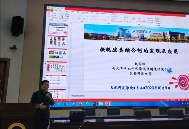10月9日下午学院邀请西北工业大学博士生导师赵军峰教授、西北师范大学博士生导师薛中华教授为米兰官网师生作了精彩的学术报告。学院相关负责人、研究生导师、全体研究生及部分本科生近300人聆听报告。