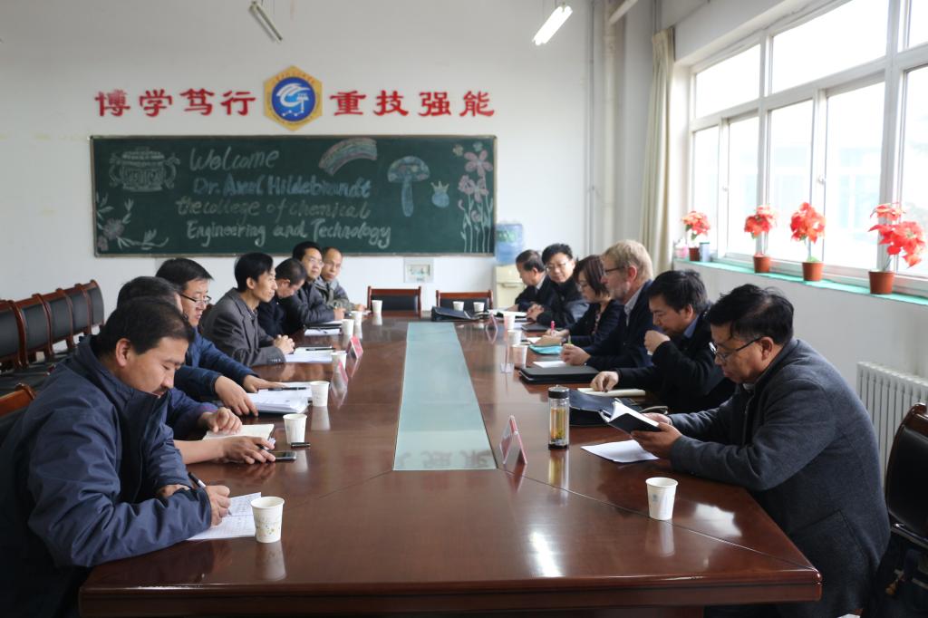 据悉,Dr.Hildebrandt axel此行属于学校申报的甘肃省外国专家局“2017年度教科文卫重点引智项目”之一,Dr. Hildebrandt axel现为德国高级专家组织成员,曾在世界最大化学制造商—瑞士巴斯夫公司(BASF)任职长达30余年,在中石化参与化工项目指导工作,长期从事工业4.0在化工生产中的应用研究、化工职业教育培训等工作,拥有丰富的化学工程工艺经验。近年来在美国、瑞士、中国等国家进行讲学,为全世界多个国家提供化工领域教师培训支持与教学指导工作。