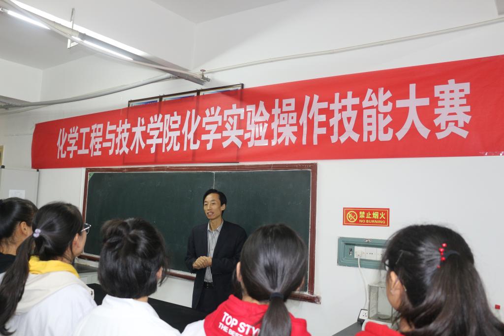 刘新文院长首先致词,他指出米兰官网举办化学实验操作技能大赛旨在推动化学实验教学改革,推动设计性、综合性、创新性实验教学的开展,检验实验教学改革成果,提高大学化学实验教学质量;通过比赛引导学生加深对化学理论基础的理解和运用,强化化学基础理论与实践的结合,提高大学生的综合能力和实践能力,培养学生的创新精神和团队协作意识。