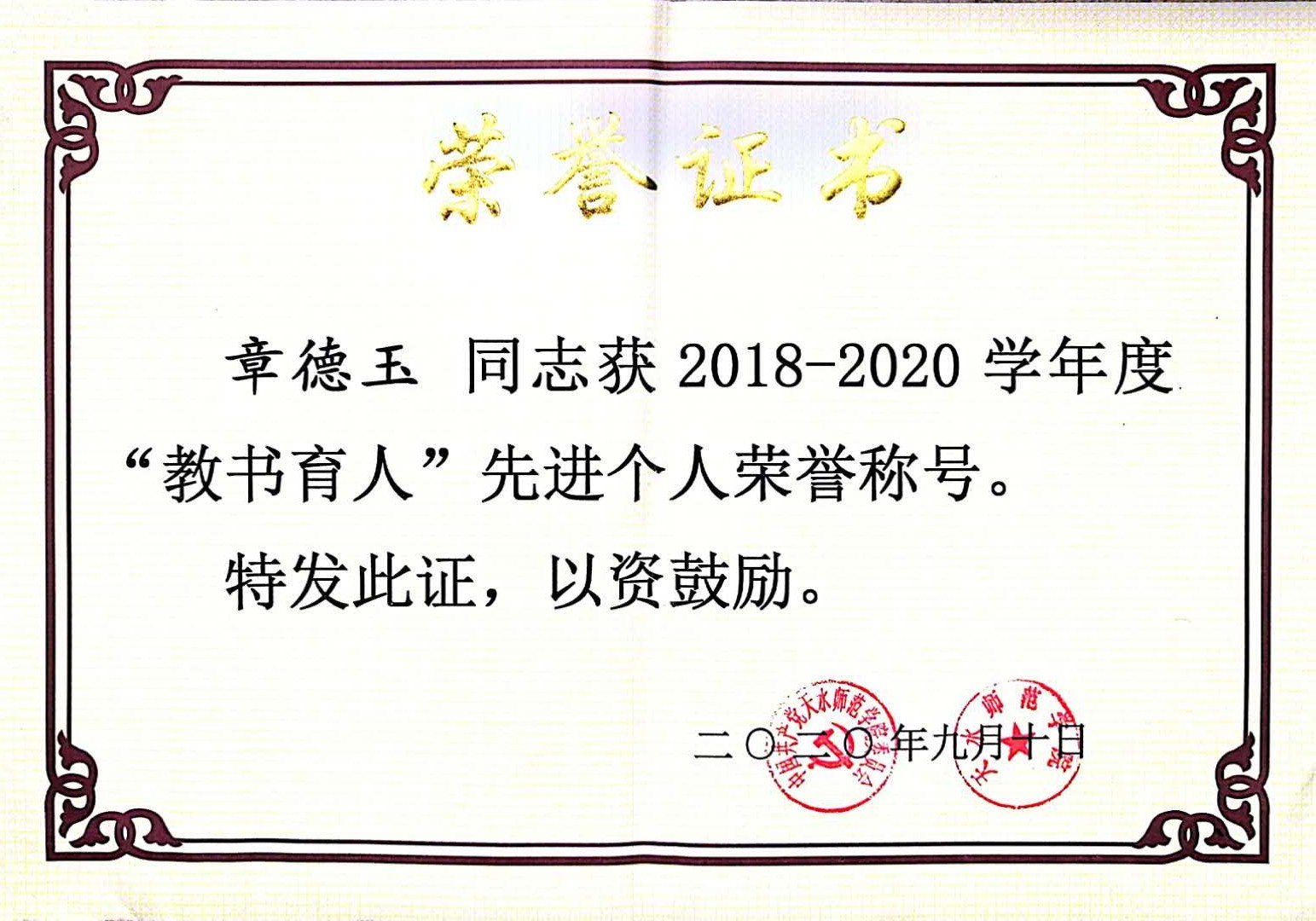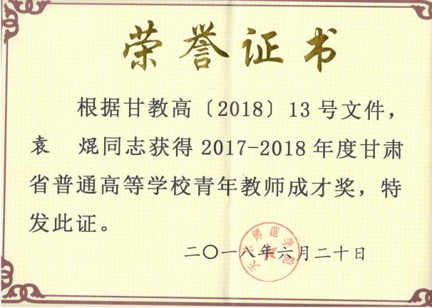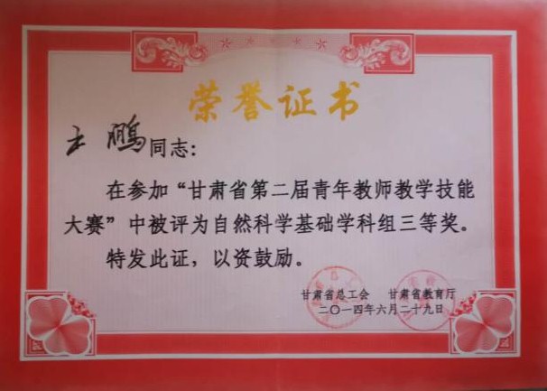 近年来,学院在新进青年教师中实施“青年教师培养导师制”,使青年教师尽快熟悉教学过程,成长为教学能手。鼓励年轻教师攻读博士学位,十三五期间,共引进博士13人,4位教师获评正高级职称,2位教师获评副高职称,3位教师攻读博士学位。1人入选教育部“新世纪人才”,2人被聘为甘肃省“青年飞天学者”,1人入选甘肃省领军人才,1人荣获甘肃省园丁奖,5人荣获甘肃省高等学校青年教师成才奖,9人入选米兰官网“青蓝人才工程”。1位教师获天水师院“四有”好老师,11位教师荣获天水师院“三育人”先进个人,2位教师获天水师范学院第三届教学优秀奖。在校级“微课竞赛”中,1位教师荣获一等奖,1位老师荣获二等奖。