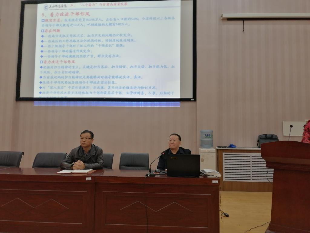 11月5日下午,校党委常委、副校长王旭林在4号报告厅为ac米兰官网中文网站师生宣讲《习近平谈治国理政》第三卷。报告会由ac米兰官网中文网站党总支书记王建斌主持,ac米兰官网中文网站全体党员及入党积极分子参加报告会。