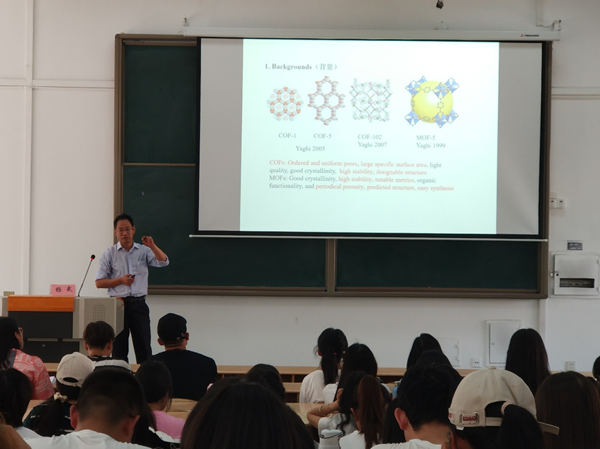 杨武教授作了题为《性能导向的功能COFs和MOFs的设计合成与应用》的报告,深入浅出地为师生们介绍了COFs和MOFs材料在荧光传感、电化学传感及超级电容器等方向的研究工作。杨军峰老师结合多年教育教学课题评审工作经验,作了题为《让你的课题申请打动评审专家的心》的报告,详细地为师生们阐述了教育教学课题申报的各个环节常出现的问题和注意事项,并就如何科学选题,合理论证进行详细地指导和说明。报告会上,相关教师和学生结合自身开展的科研、教研课题与两位杨老师进行了深入的交流,师生们获益匪浅。
