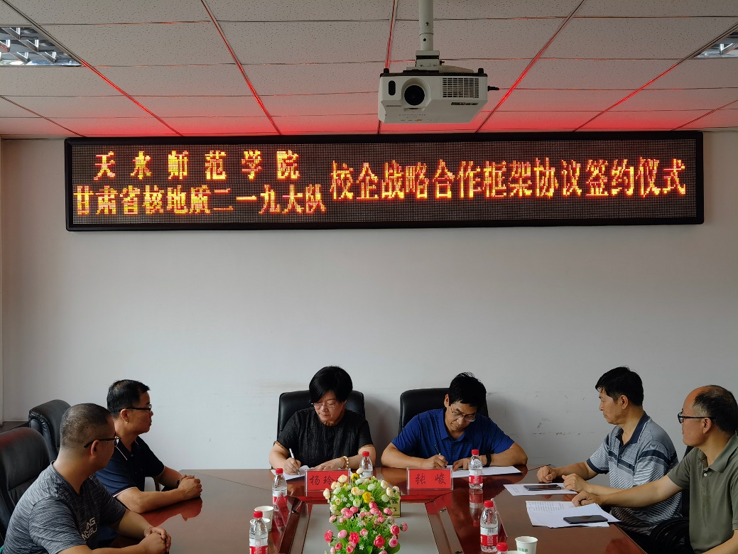 7月15日,天水师范学院ac米兰官网中文网站与甘肃省核地质二一九大队共建实习基地挂牌仪式在二一九大队举行,双方就人才培养、科学研究、技术创新等领域的深度合作达成协议,并签订了校企战略合作框架协议。