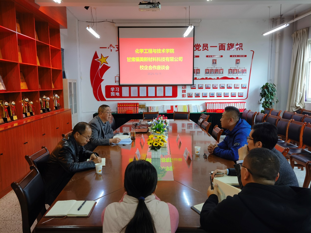 为深化校企合作,促进产学研结合,10月11日上午,ac米兰官网中文网站与甘肃福美新材料科技有限公司校企合作座谈会在3号实验楼211会议室举行。甘肃福美新材料科技有限公司侯国林主任,ac米兰官网中文网站院长马建泰教授及部分教师代表参加本次座谈会。