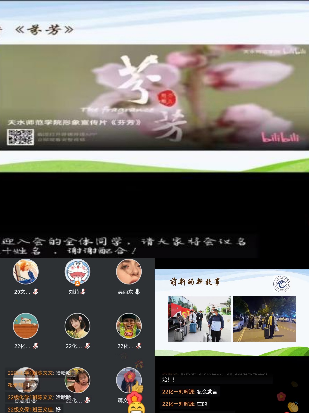 座谈会上,首先为2022级新生播放了米兰官网宣传片《芬芳》,视频中向大家展示了羲皇故里,丝路明珠,龙城天水。随后,20级和22级学生干部带领新生共同合唱了天水师范学院校歌《我的精神家园》。最后,20级与21级学生代表分别发言,给大家分享了她们精彩的团故事,畅谈了在学校学习生活的感受,并为新生解决了他们生活与学习中遇到的问题。