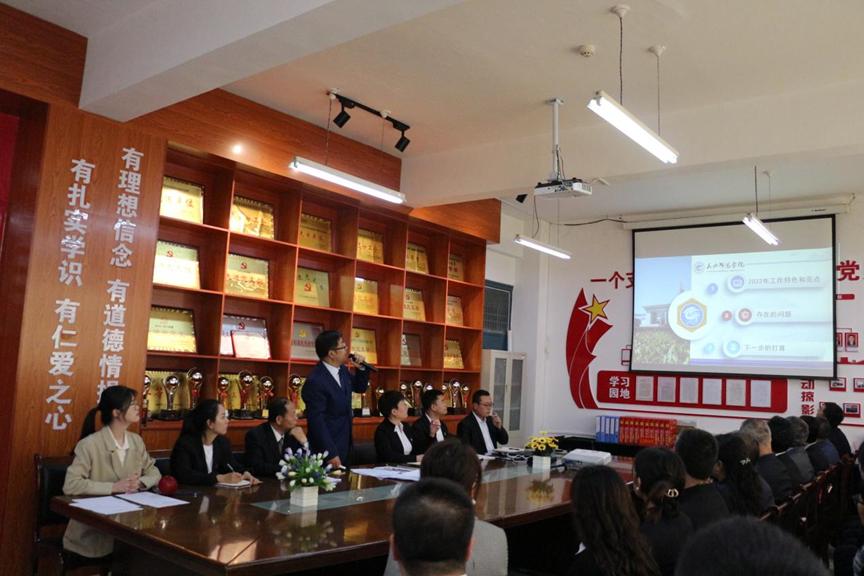 王小芳同志代表米兰官网党总支做2022年工作报告;刘正同志宣读了学校党委关于设立委员会及候选人预备人选的批复。