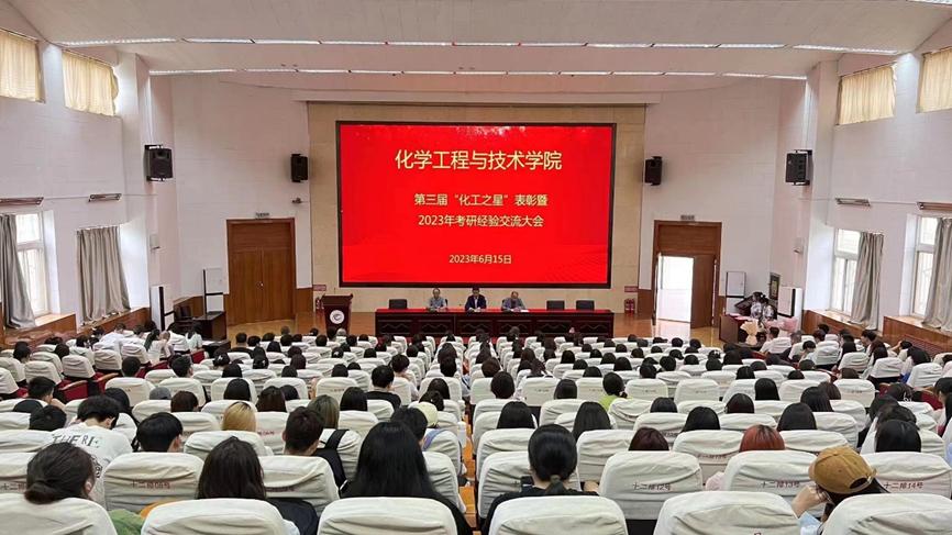 6月15日下午,ac米兰官网中文网站在二号报告厅举行第三届“化工之星”表彰暨2023届考研经验交流大会。学院领导班子、2020级班主任、辅导员和20级、21级全体在校学生,共计200余人参加大会。会议由学院党委副书记刘正主持。