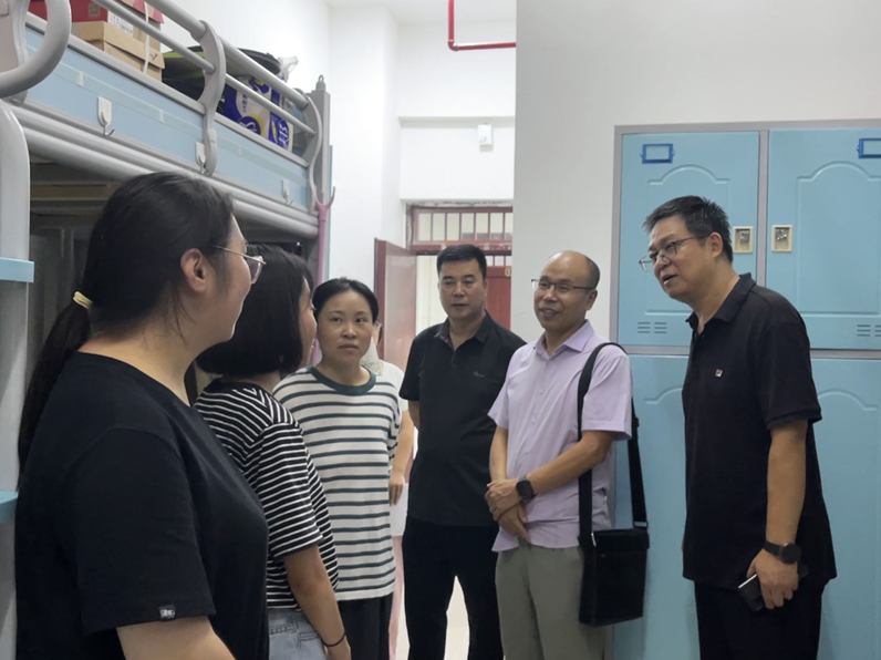 “家乡是哪里的?”“学校伙食能否适应?”“有没有遇到什么困难?”每到一处,各位领导和老师都会亲切地询问同学们的生活、学习、环境适应等情况,并认真听取新生对校园、宿舍服务设施等方面的意见和建议。